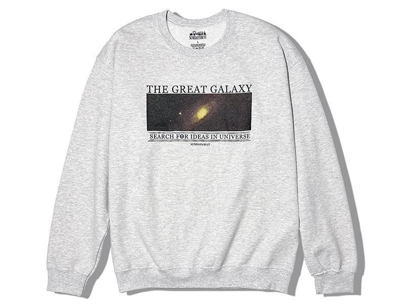 SUNDAYS BESTのオリジナル・クルーネックスウェットです。フロントに僕達の住む銀河系をプリントしたTHE GREAT GALAXYスウェットです。宇宙の事を考えていると無限のアイデアが浮かんでくる気がするので、みなさんも何かアイデアに困ったらこのスウェット着て星空を見上げて下さい。コットン・ポリ50/50の軽くて暖かくて気持ちの良い、ややゆったりしたシルエットで8オンス生地です。■身長182cm/XLサイズ着用です。 |
