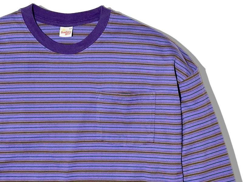 SUNDAYS BESTのオリジナル・マルチボーダーロングスリーブポケットTシャツです。オリジナルピッチで生地から作りました。ネイティブ アメリカンの作る伝統的な陶器からイメージしたカラーで作りました。どちらも空と大地を感じるアースカラーで合わせやすくて最高です!シルエットは普段作っているオリジナルロンTとほぼ同じシルエットで着丈短め、身幅広めで、アームホールも広め黄金比率です。製品洗い済みでほぼ縮みもありません。■身長182cm/XLサイズ着用です。