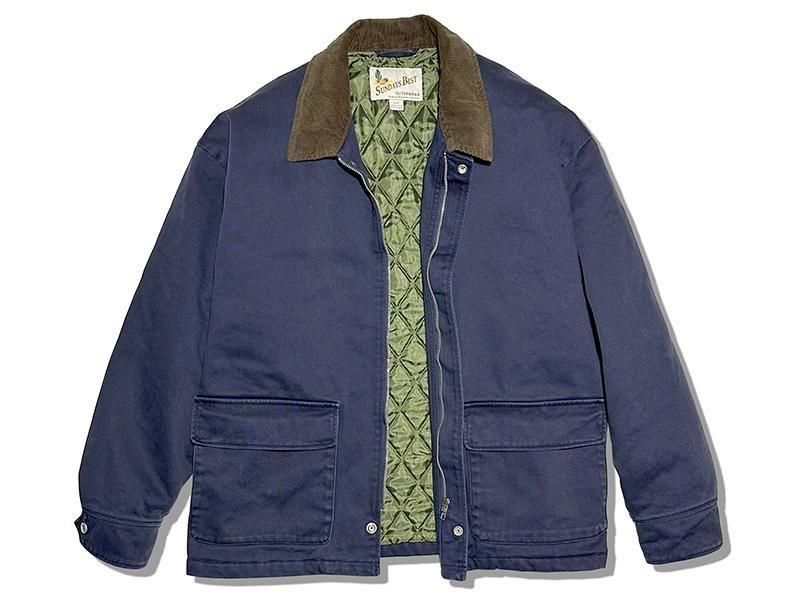 ヘビーデューティーなコットンツイルにバイオストーンウォッシュ加工を施したワークジャケットです。カバっと着れて軽くて暖かいワークジャケットはウォッシュ加工してあるので柔らかくて着心地も最高です。フェードした生地感も理想通りにできました。フロントジップを隠すフライフロントには2つのスナップボタン。大き目のフラップポケットのサイドにはハンドウォーマーを付けてます。大好きなブラウンコーデュロイ襟でカラーコントラストも最高です。袖は2つのスナップでサイズ調節できます。裏地はアーム含めダイヤモンドキルティング仕様で軽くて暖かく着用できます。内側に2つのポケットもついてます。
